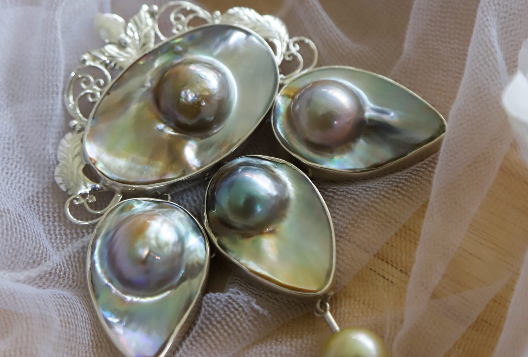 2in1 Bross Perak + liontin perak 925 mabe kerang mutiara laut