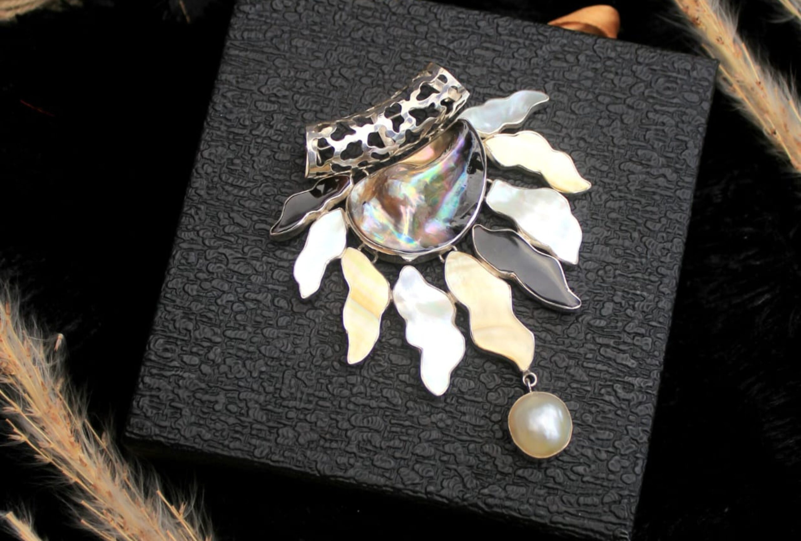 Produk kami adalah perpaduan indah antara keanggunan alami mutiara dan karakter unik daun janda bolong. Setiap butir mutiara melambangkan kemurnian dan keabadian, sementara daun janda bolong melengkapi keindahan dengan sentuhan artistiknya yang tak terduga.