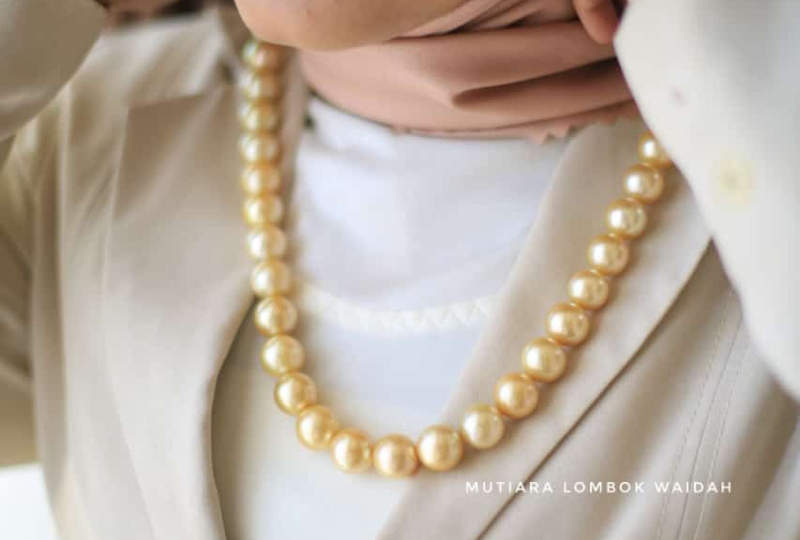 Mutiara Lombok Waidah dengan tagline Indonesian Genuine Pearls menggunakan mutiara laut asli dari Lombok yang merupakan kekayaan alam Indonesia